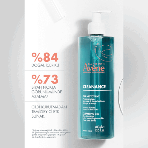 - Avene Cleanance Gel Nettoyante temizleme jeli içeriğindeki termal su hassasiyeti yatıştırır