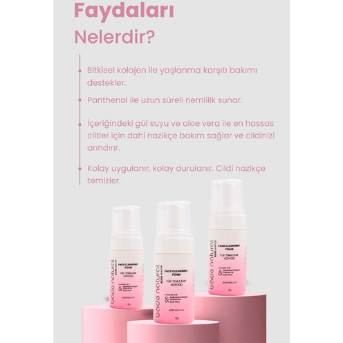 - Gül suyu içerikli yüz temizleme köpüğüdür.