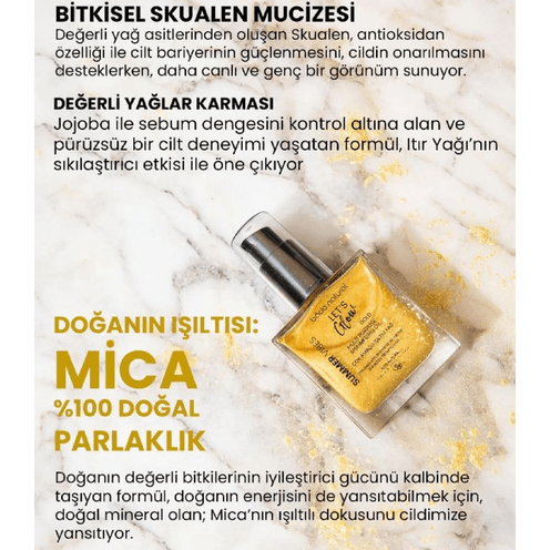 - Cilt, vücut ve saç bakımında kullanım sunan besleyici ve nemlendirici ışıltılı vücut yağıdır.