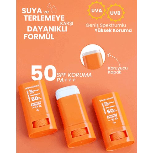 - %100 mineral filtreli SPF 50 güneş koruyucu sticktir.