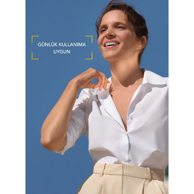 - SPF 50+ cildi güneşe ve çevresel faktörlere karşı korumaya yardımcı olur.