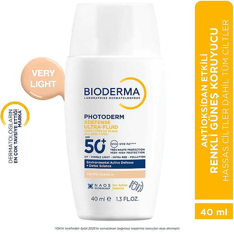 Bioderma Photoderm XDefense Ultra Fluid SPF 50+ Antioksidan Etkili Renkli Güneş Kremi Very Light 40ml