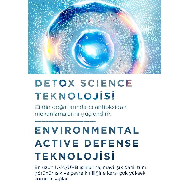- En uzun UVA/UVB, mavi ışık dahil tüm görünür kızılötesi ile çevresel faktörlere karşı yüksek koruma sağlar.