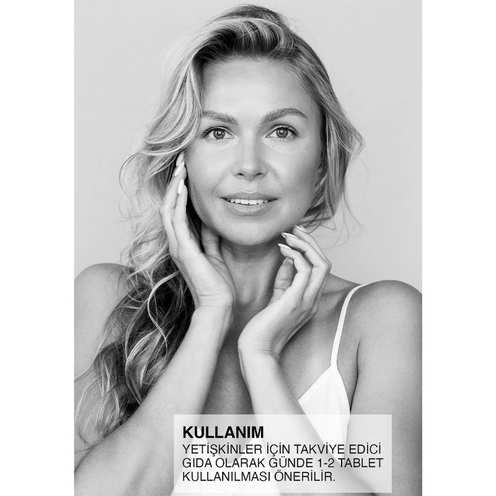 - Hidrolize kolajen, Hyaluronik Asit, Nadh içeren tablet gıda takviyesidir.