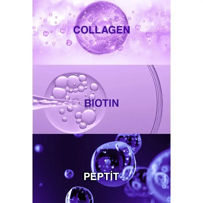 - Saç dökülmesine karşı geliştirilmiş bakım şampuanıdır. - Bio-active peptitler 18 aminoasitten oluşur. - Biotin ve kolajen peptitleri saçların daha hacimli ve dolgun görünmesine yardımcı olur. - Saçlara daha hacimli, daha güçlü bir görünüm kazandırmayı destekler. Nasıl Kullanılmalı: Islak saça masaj yaparak uygulayınız. 1-2 dakika bekledikten sonra durulayınız. Öneri - Etkili sonuç için ürünün düzenli kullanılması tavsiye edilir. - Günlük kullanıma uygundur. Kimler Kullanabilir: Tüm saç tipleri için uygundur.