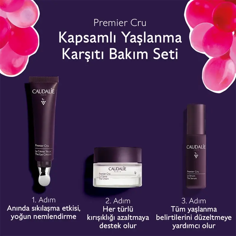 Öneri: Cildinize Caudalie Premier Cru The Serum uygulayabilirsiniz.