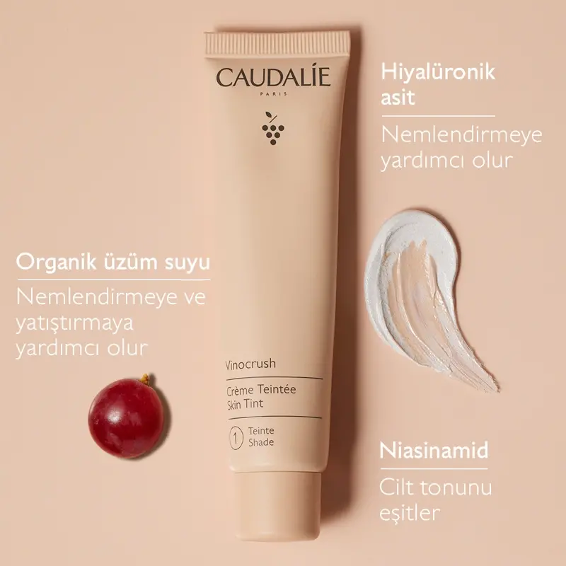 Öneri: Daha hafif kapatıcı etki için Vinocrush Skin Tint'i gündüz kreminizle karıştırarak uygulayın.