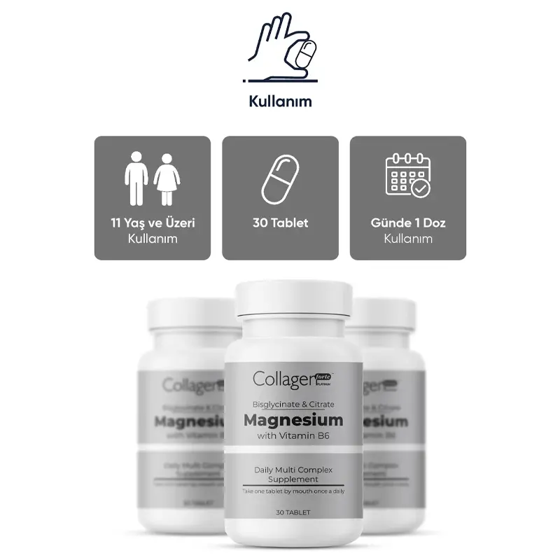 - Magnezyum ve vitamin B6 içeren gıda takviyesidir.