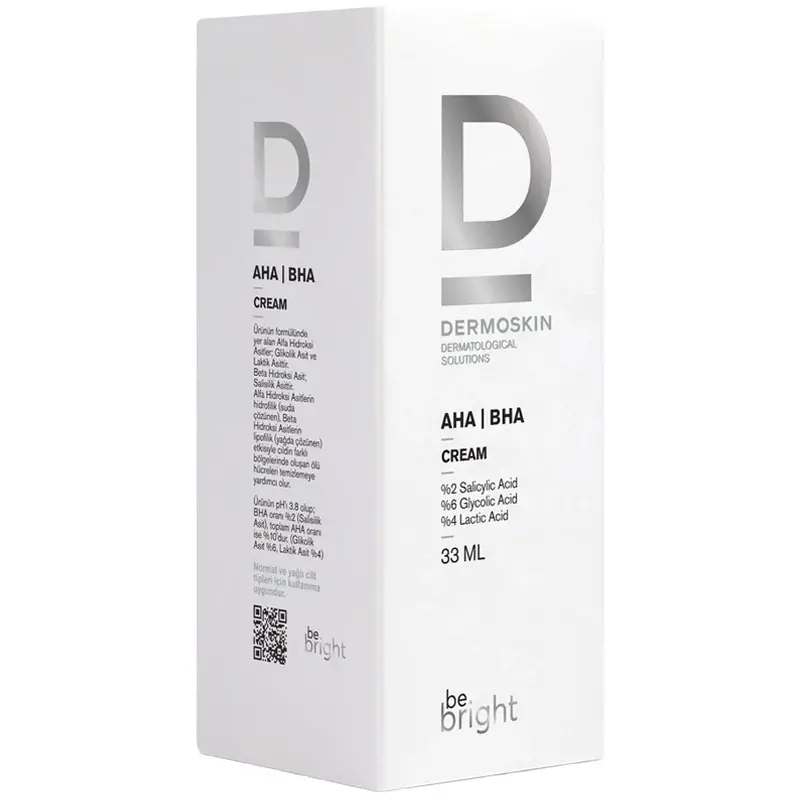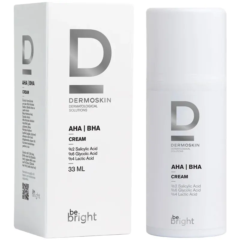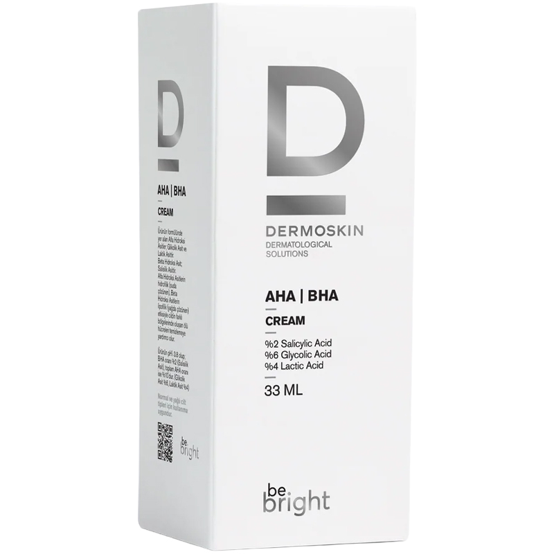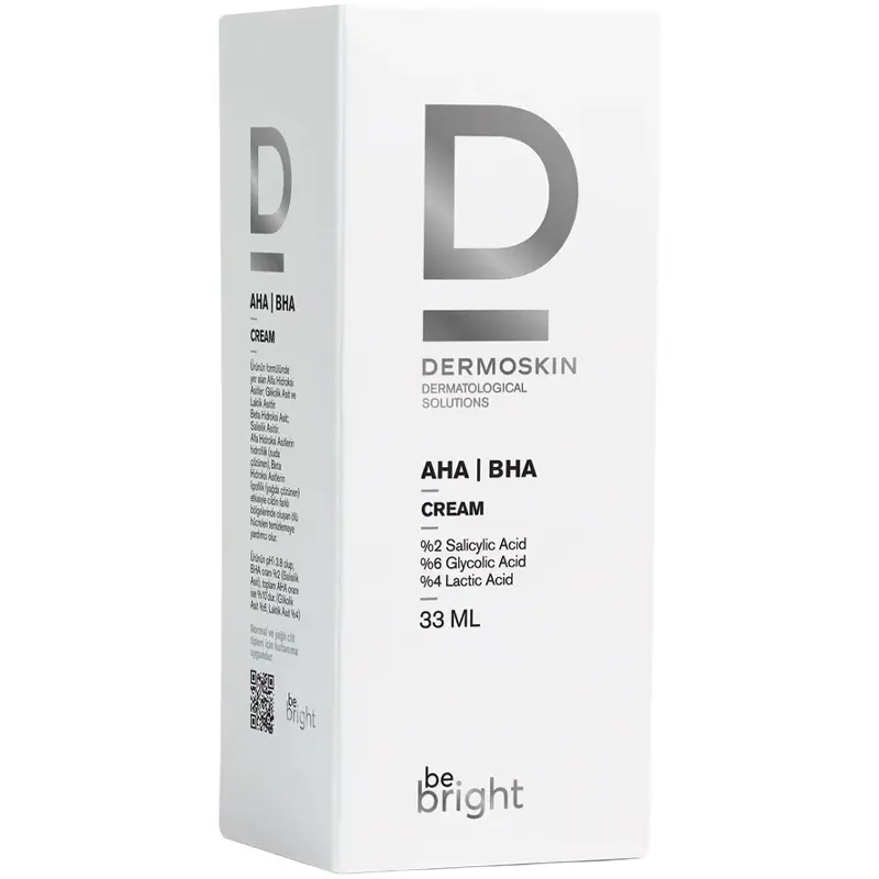 Dermoskin Be Bright AHA / BHA- Leke ve ince çizgi karşıtı geliştirilmiş bakım kremidir.