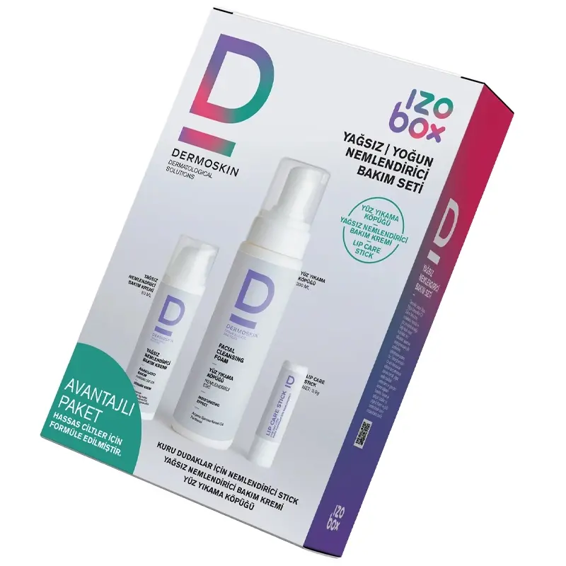 Dermoskin Izobox Yağsız Yoğun Nemlendirici Bakım Seti- Dermoskin Facial Cleansing Foam Yüz Temizleme Köpüğü 200ml