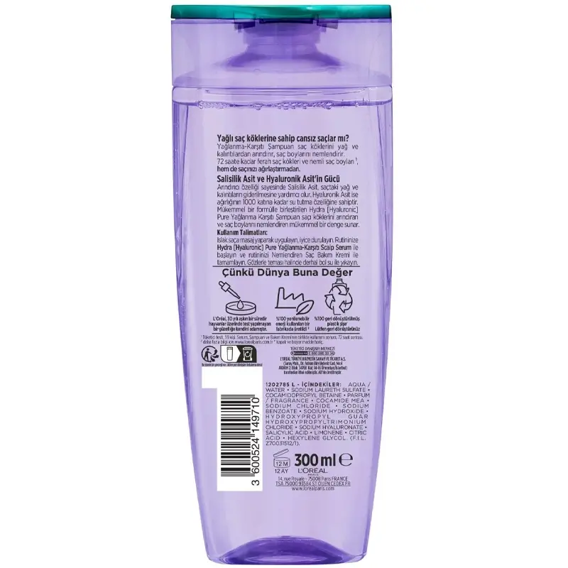Elseve Hydra Hyaluronic Pure - Yağlanma Karşıtı Şampuan 300ml