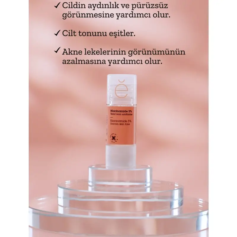- Niacinamide (B3 vitamini), cildin tonunu eşitlemeye yardımcı olur.