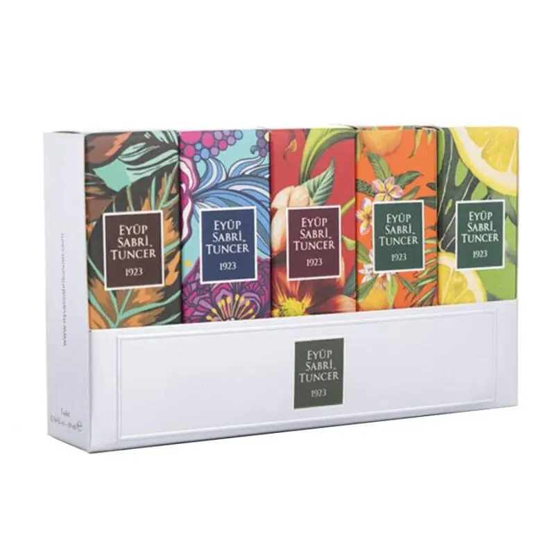 Eyüp Sabri Tuncer Kolonya Seti - Setin içeriğinde;Çeşme limon kolonyası 16ml + amber kolonyası 16ml + Bodrummandalina kolonyası + okyonus kolonyası 16ml + tütün kolonyası 16ml- Hijyenik bakım sağlar.