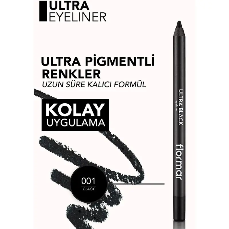 - Yoğun renk veren sedefli ve mat bitişe sahip Flormar Ultra Eyeliner gün boyu kalıcılığını korur.