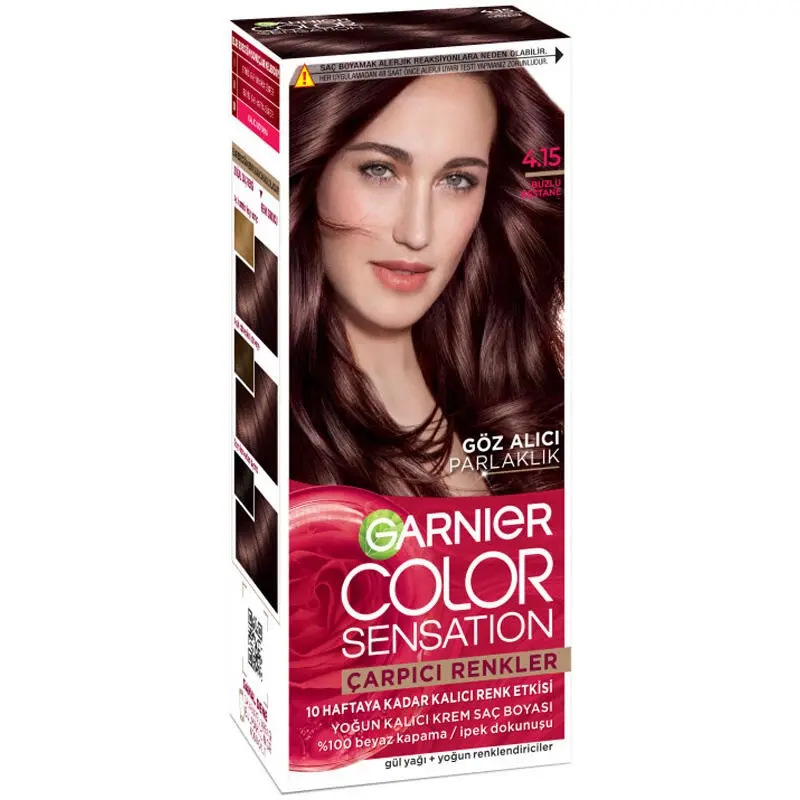 Garnier Çarpıcı Renkler Yoğun Kalıcı Saç Boyası No: 4.15- Buzlu Kestane saç boyasıdır.