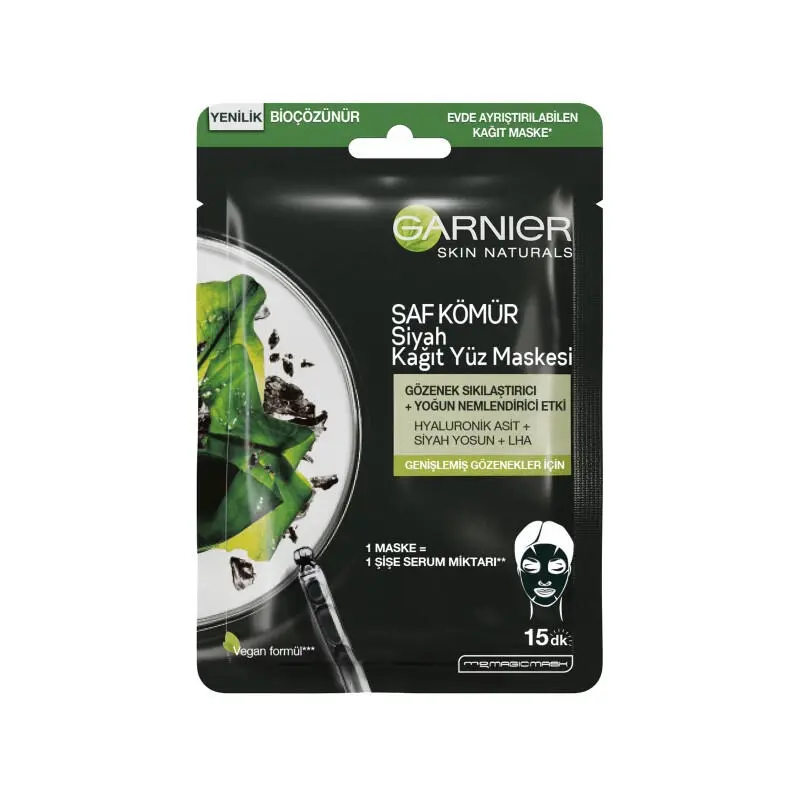 Garnier Saf Kömür - Siyah Yosun Özlü Gözenek Karşıtı Kağıt Yüz Maskesi- Gözenekli ciltler için geliştirilmiş kağıt yüz maskesidir.