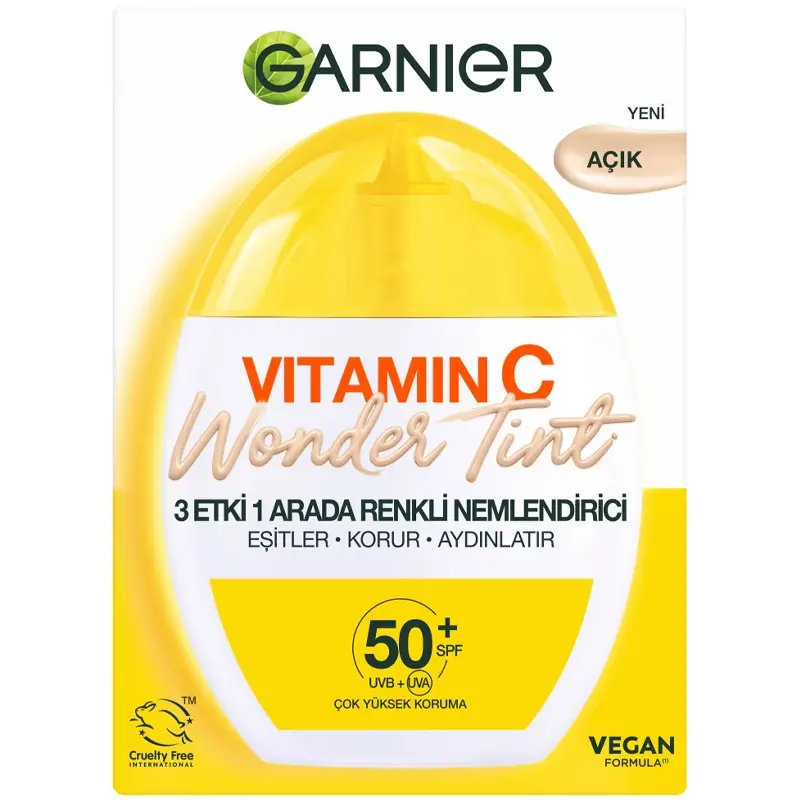 Garnier Vitamin C Wonder Tint SPF 50 + 3 Etki 1 Arada Renkli Nemlendirici Orta Ton 40ml
