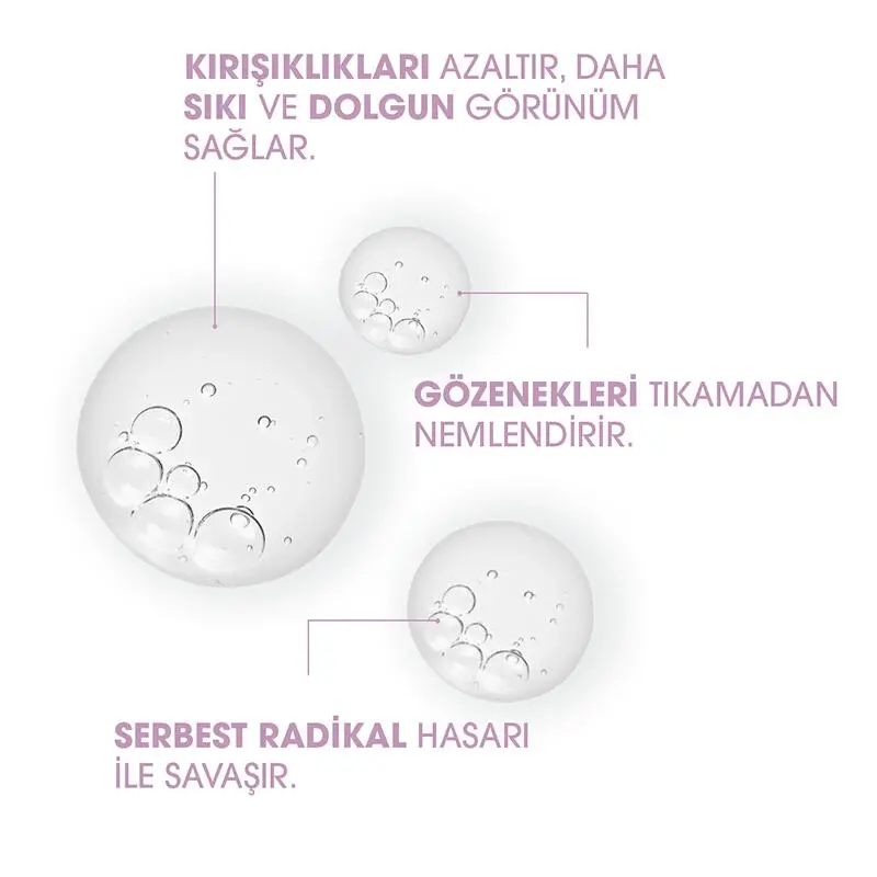 - Ciltteki ince çizgi ve kırışıklık görünümünü gidermeyi destekler.