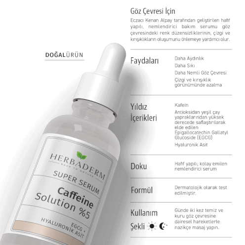 - %5 kafein içeriği, göz altındaki şişlikleri ve koyu halkaların görünümünü en aza indirgemeye yardımcı olur.