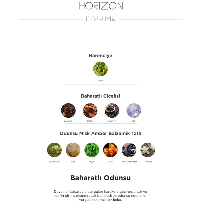 - Horizon EDP, baharatlı ve odunsu notalar içerir.