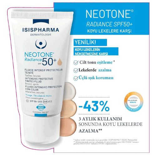 - Pigmentasyon lekelerine karşı renkli güneş koruyucu bakım kremidir.