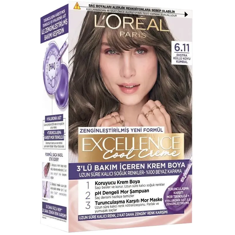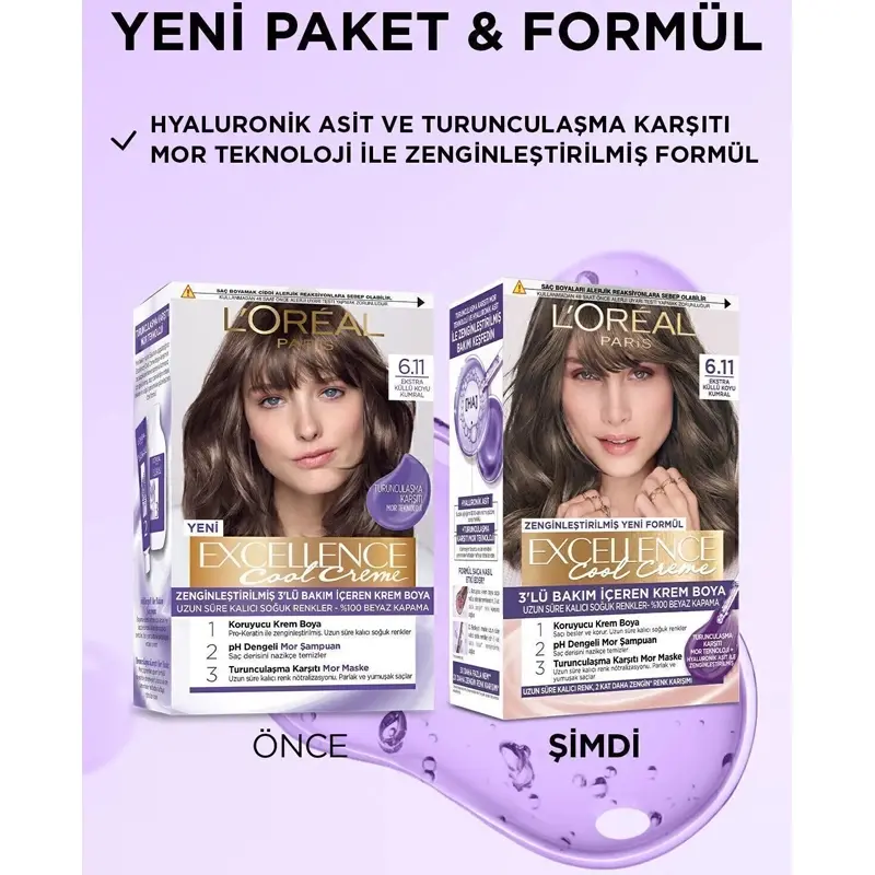 Loreal Paris Excellence Cool Creme - Krem Saç Boyası No: 6.11 Ekstra Küllü Koyu Kumral- Uzun süre kalıcı saç boyasıdır.