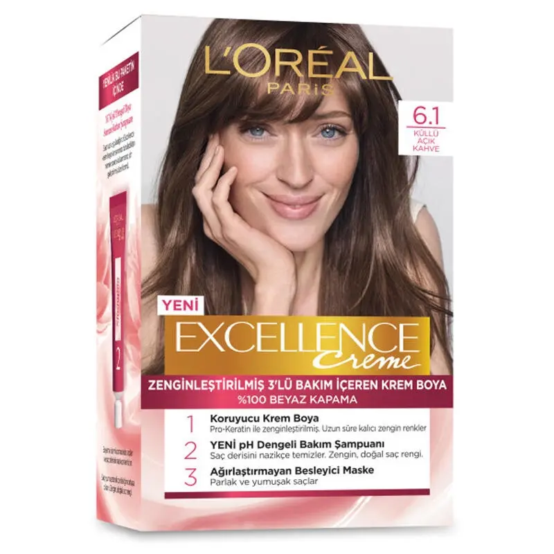 - Excellence Creme küllü açık kahve boyası saçlara yumuşaklık kazandırır.