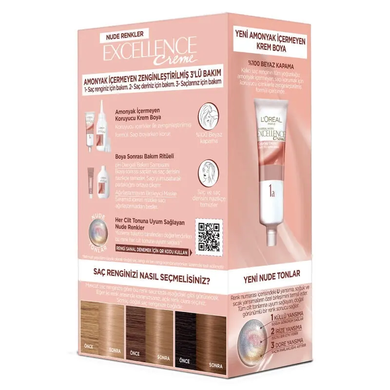 - Excellence Creme Nude Koyu Sarı saç boyası saçlara yumuşaklık kazandırır.
