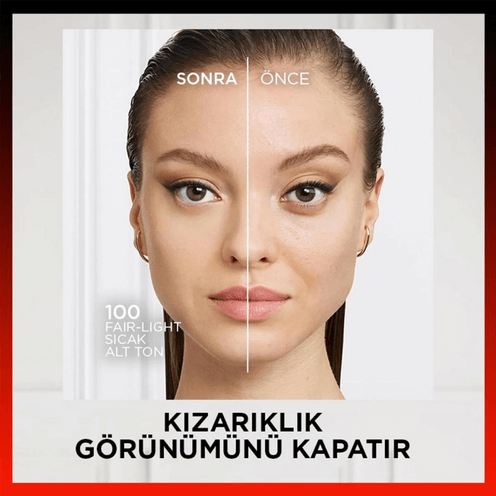 - Ciltteki kızarıklık görünümünü kapatır.