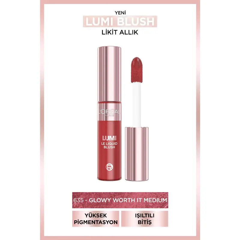 - Yüksek pigmentli ışıltı veren likit allıktır. - Renk: 635 Glowy Worth - Yanaklarda ışıltılı bitiş sağlar. - Ciltte kolay dağılım sağlar. Nasıl Kullanılmalı: Yanaklarınıza uygulayıp parmaklarınızla dağıtınız. Öneri: Makyaj fırçası yardımıyla da uygulama yapabilirsiniz.