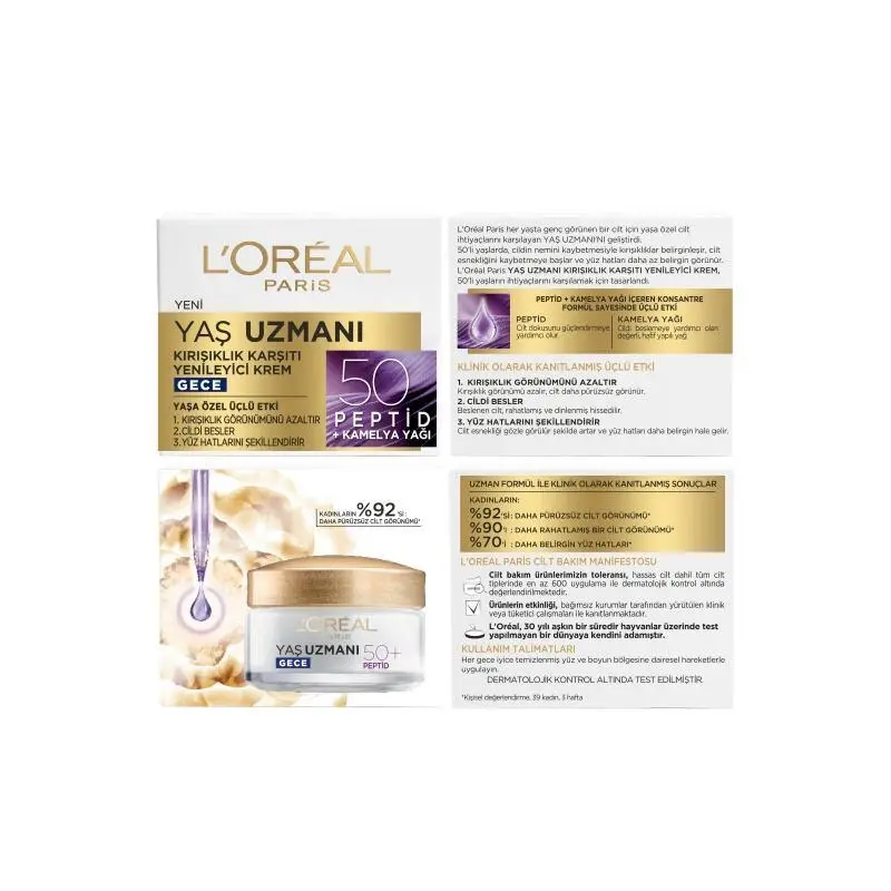 - 50 Yaş ve üzeri için kırışıklık karşıtı gece kremidir.