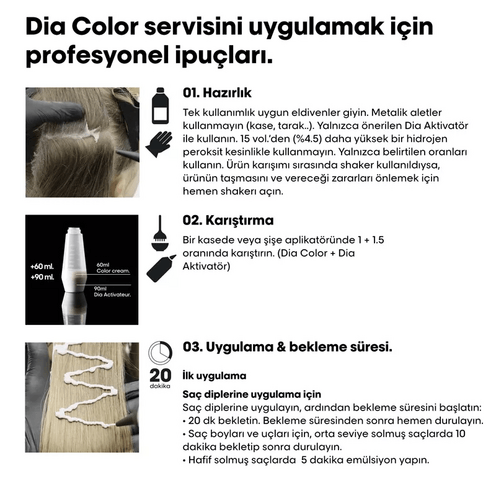 - Ön boyama ve renk canlandırma işlemlerinde kullanılan yarı kalıcı saç boyasıdır.