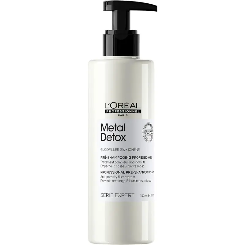 - Boyalı ve açıcı ile işlem görmüş saçlar için metal karşıtı geliştirilmiş şampuan öncesi bakımdır.