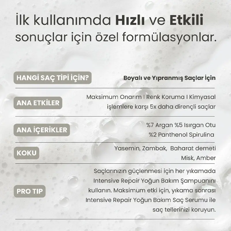 - Boyalı ve yıpranmış saçlar için yoğun bakım şampuanıdır.