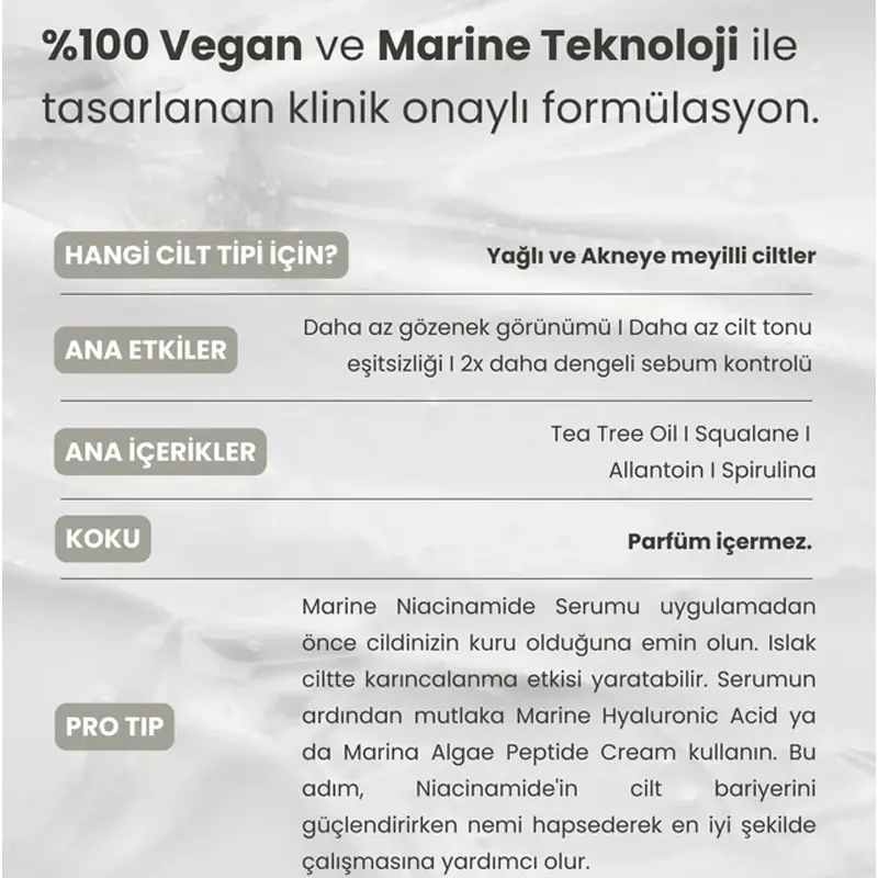 - Niacinamide içeren bakım serumudur.