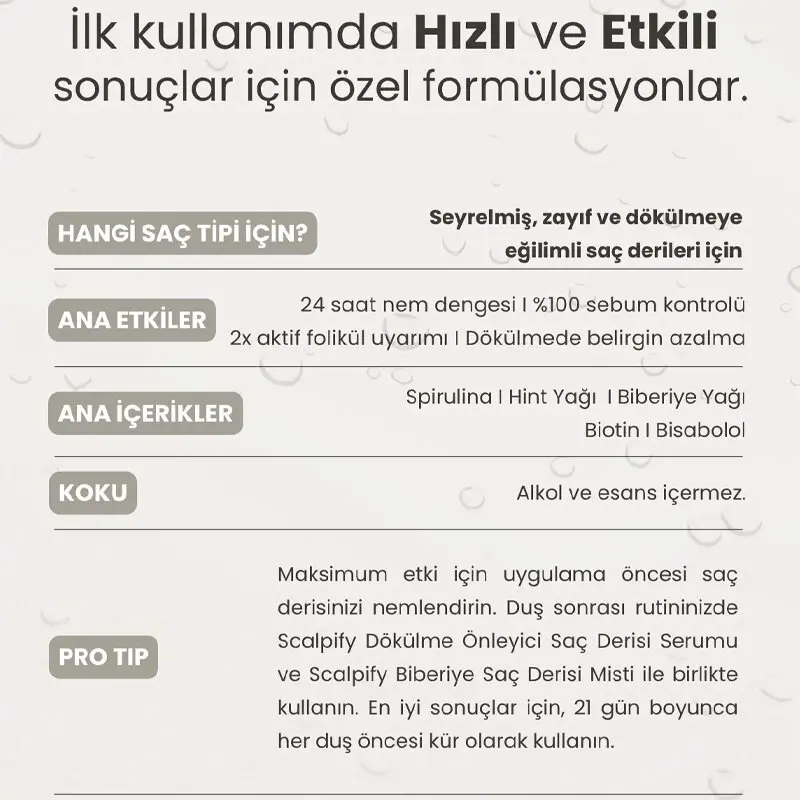 Öneri: Scalpify Şampuan ve Serum ile bakım rutininizi tamamlayabilirsiniz.
