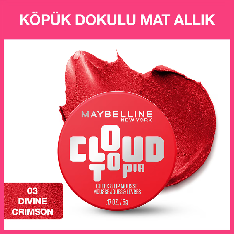 Maybelline Cloudtopia Cheek Lip Mousse - Köpük Dokulu Mat Allık No: 03 Divine Crimson