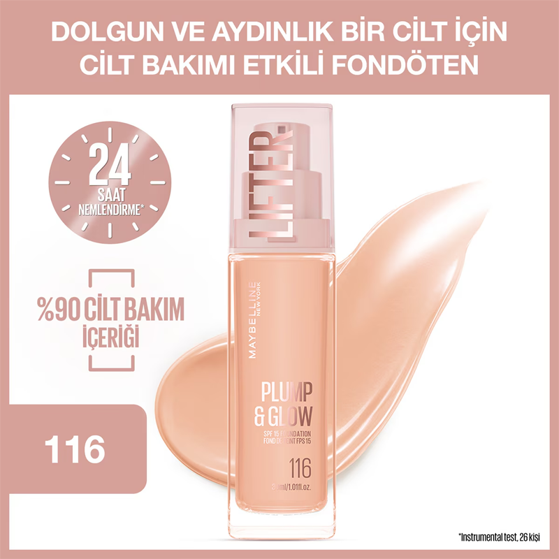Maybelline Lifter Plump & Glow - Cilt Bakım Etkili Fondöten No: 116
