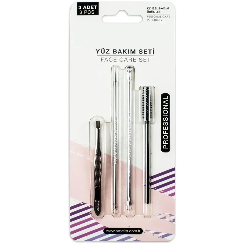 Cımbız + kaş fırçası + akne ve siyah nokta temizleme aparatı 2'li