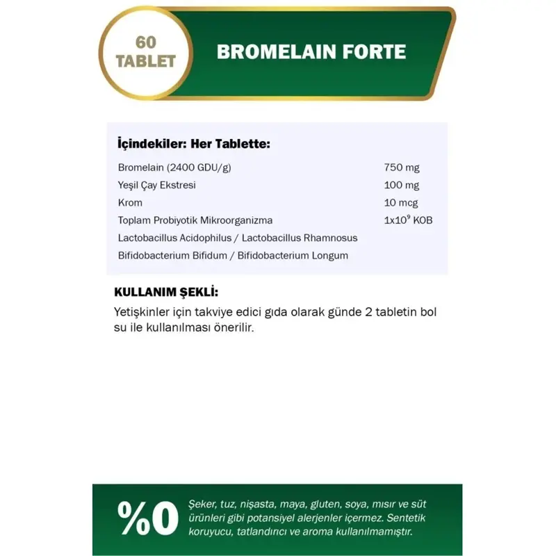 - Nutraxin Bromelain Forte, ananastan elde edilen ve proteinleri sindiren enzim olan bromelain, yeşil çay ekstresi, Krom ve Probiyotik içerir.