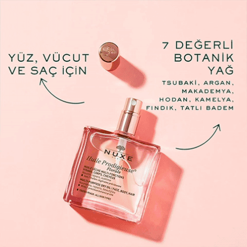- Yüz, vücut ve saç kullanımı için özel olarak geliştirilmiş çiçek kokulu kuru yağdır.