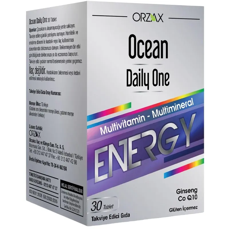 - Multivitamin, mineral, Panax Ginseng ve Koenzim Q10 içeren takviye edici gıdadır.