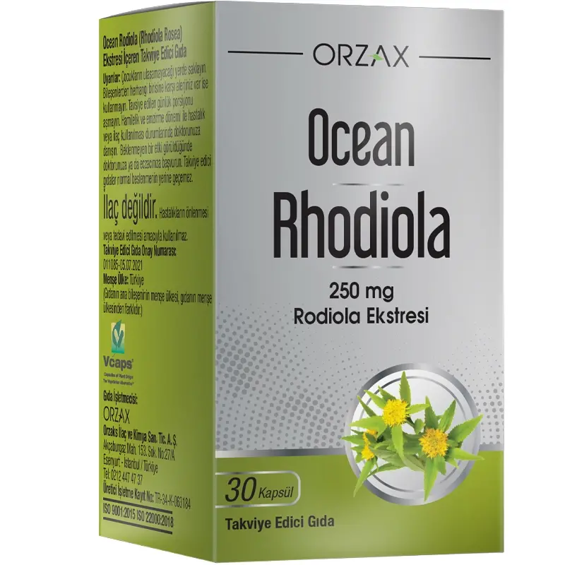 - Rhodiola rosea (altın kök) bitki ekstresi içeren takviye edici gıdadır.