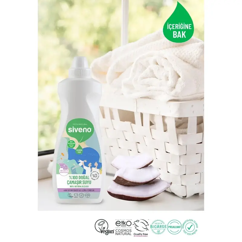 - Hipoklorit ve amonyak gibi tahriş edici sentetik maddeler içermeyen formüle sahiptir.