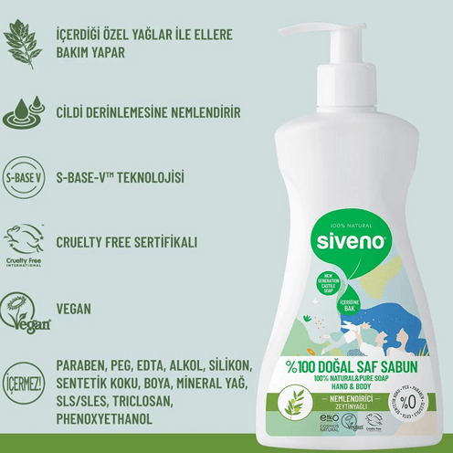 - Nemlendirici etkili %100 doğal zeytin yağlı sıvı sabundur.