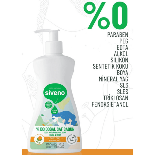 - Tazeleyici etkili %100 doğal portakal yağlı sıvı sabundur.