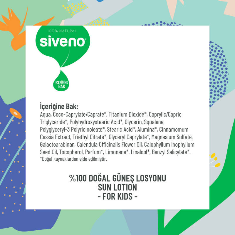 - Çocuklar için geliştirilmiş %100 doğal SPF50+ güneş losyonudur.