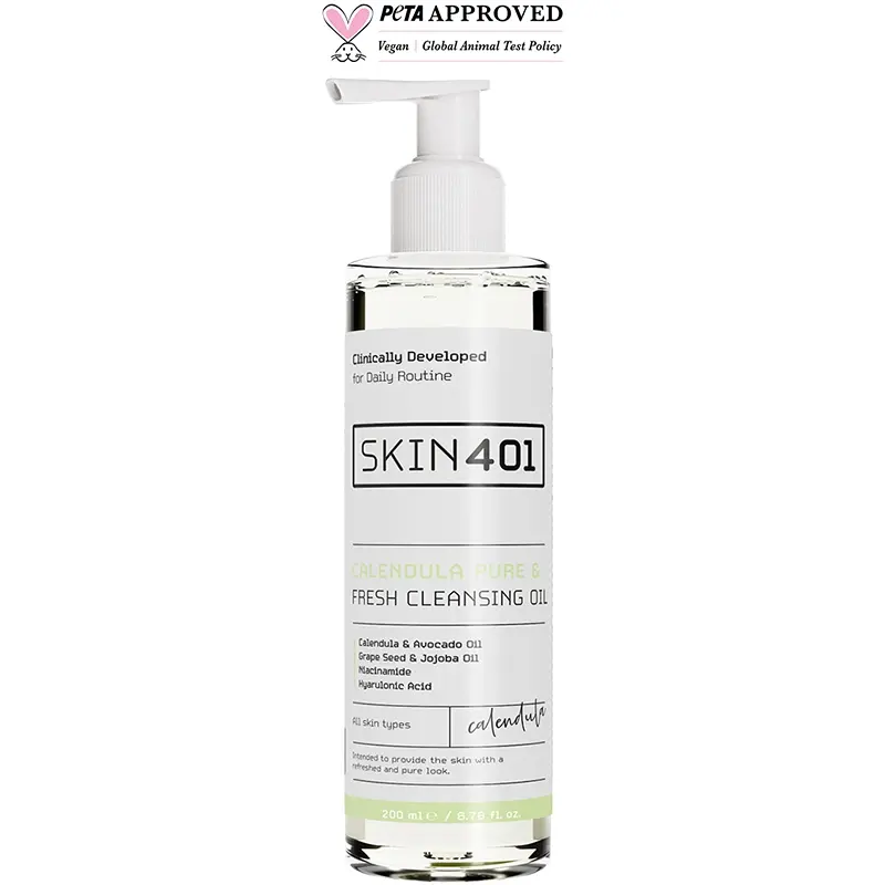 Skin401 Calendula Pure & Fresh Cleansing Oil - Cilt Temizleme Yağı 200ml: Peg-7 Glyceryl Cocoate, Aqua, Glycerin, Lauryl Glucoside,Niacinamide, Sodium C14-16 Olefin Sulfonate, Cocamidopropyl Betaine, Aloebarbadensis Leaf Juice, Vitis Vinifera Seed Oil, Persea Gratissima Oil,Simmondsia Chinensis Seed Oil, Helianthus Annuus Seed Oil, Phenoxyethanol,Sodium Hyaluronate, Polysorbate 20, Panthenol, Calendula Officinalis Flowerextract, Citric Acid, Calendula Officinalis Flower Oil, Bellis Perennis Flowerextract, Ethylhexylglycerin, Tetrasodium Edta, Potassium Sorbate, Benzoic Acid,Dehydroacetic Acid, Sodium Benzoate.