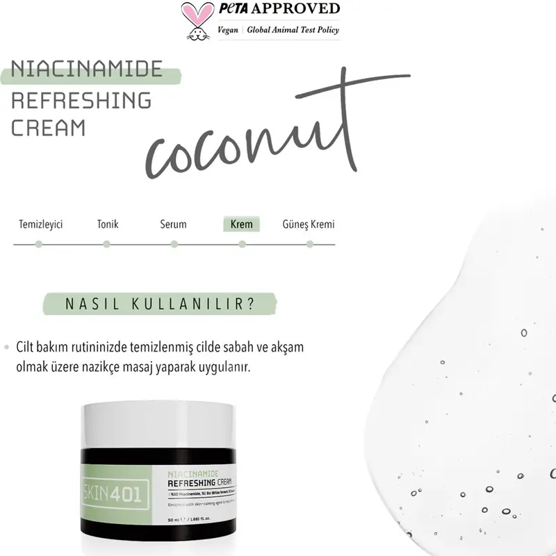 - Niacinamide gözenek görünümünü en aza indirgemeye yardımcı olur.