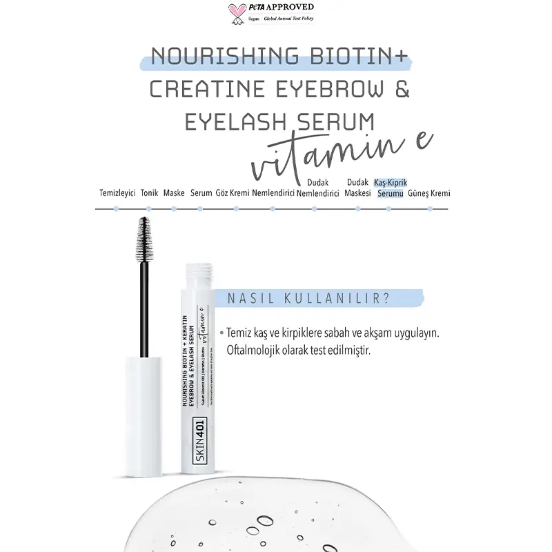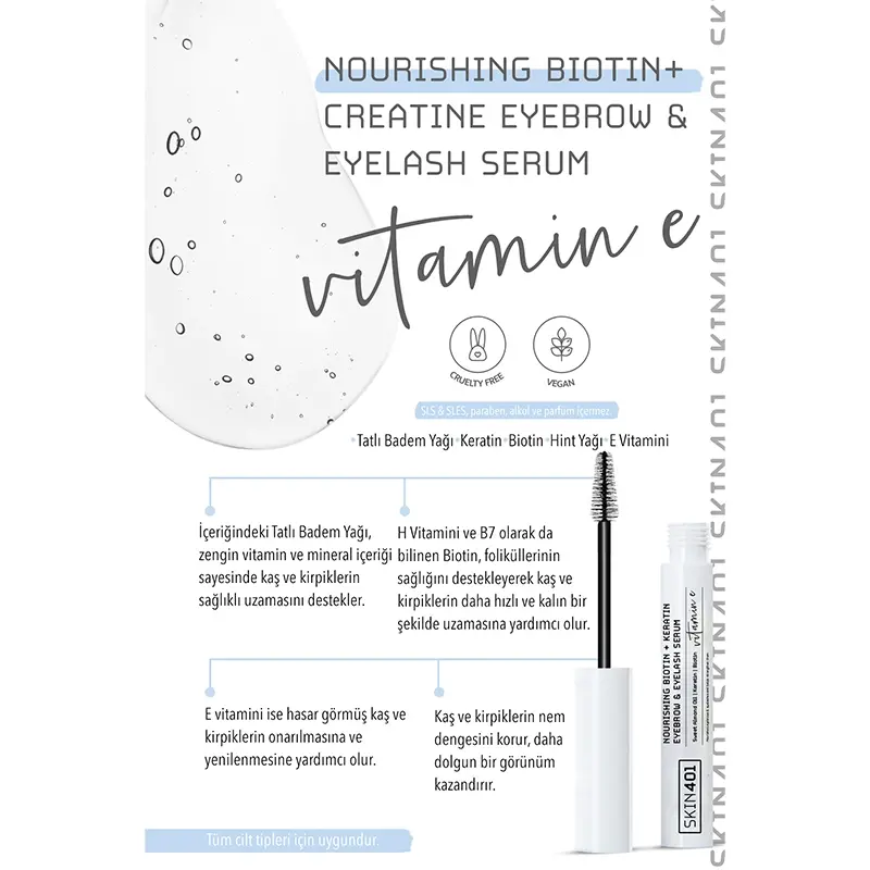 - Biotin ve keratin içeren kaş kirpik serumudur.